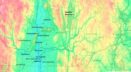 Westfield and nearby cities are connected in the Connecticut Valley River basin